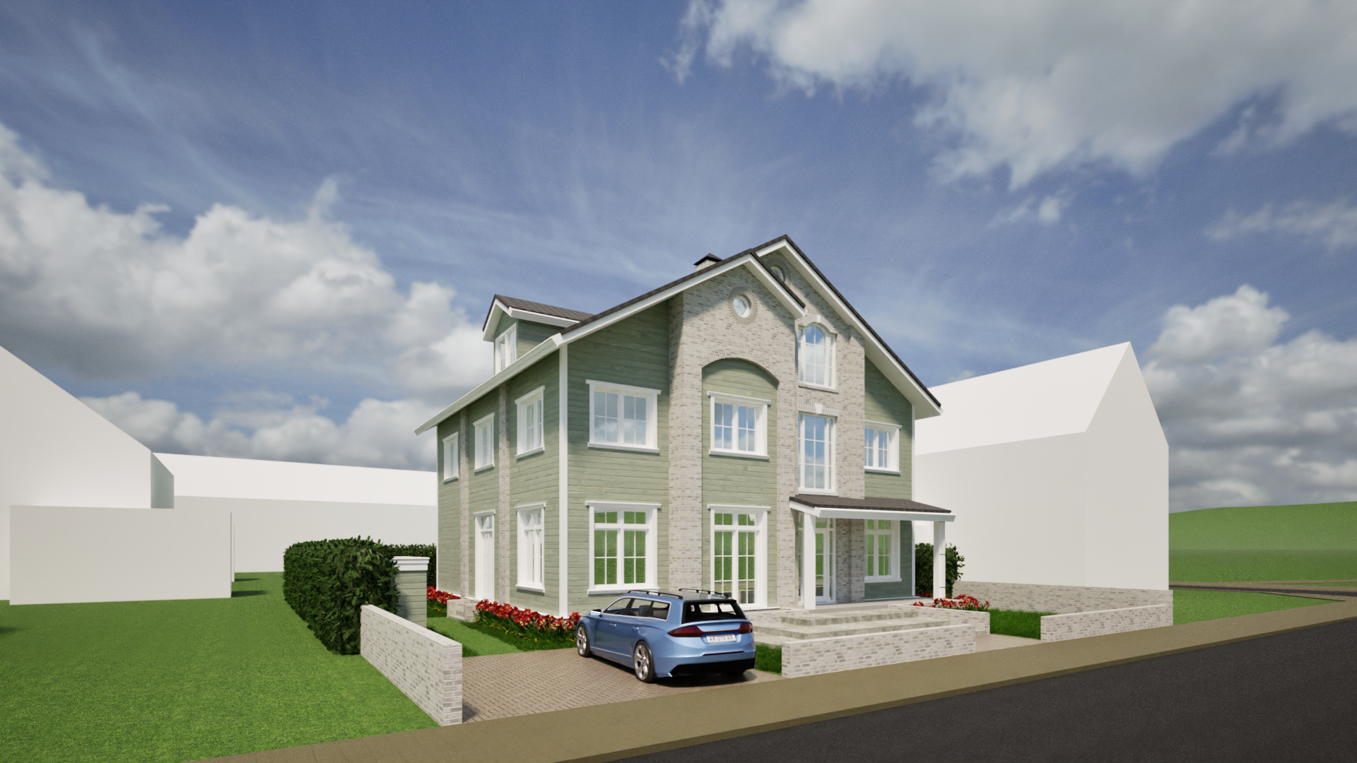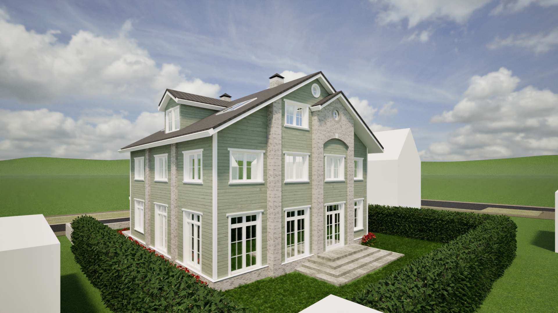 Deze prachtige woning is ontworpen naar de wens van een riante villa woning. Met de bakstenen kolommen die in de gevel omhoog lopen wordt de woning geaccentueerd. Verder zijn de openingen in het hout geaccentueerd met een kader om deze er iets meer uit te laten springen